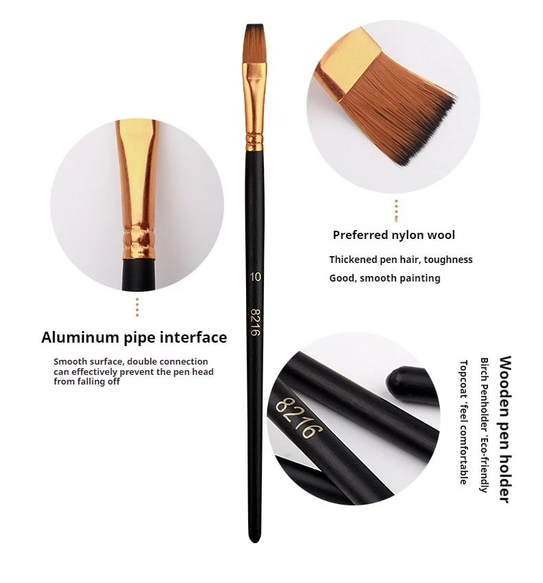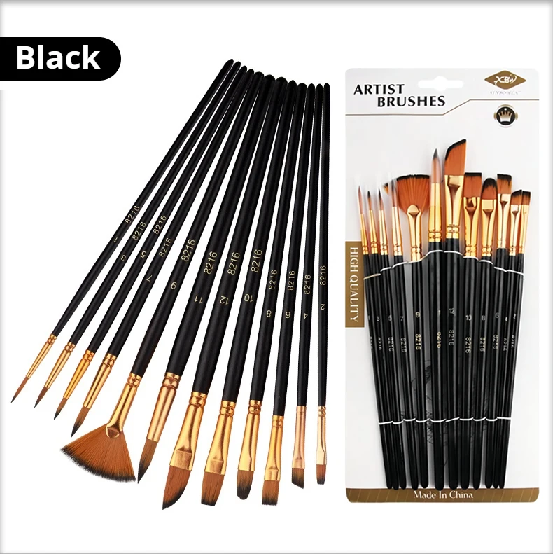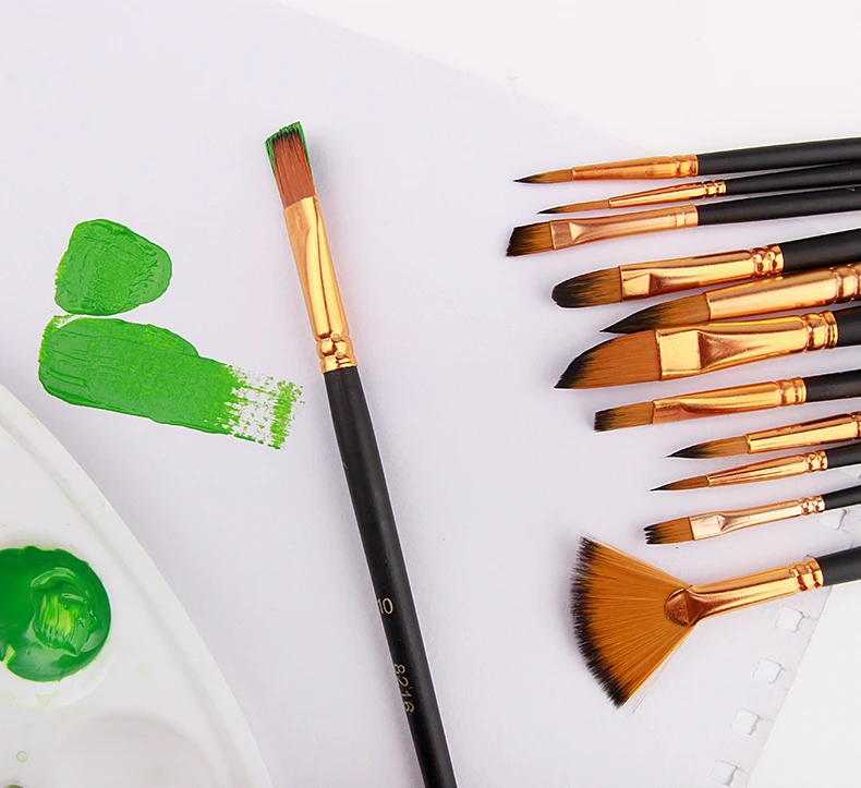 12 PCS Nylon Bristle Brush Set, Nylon Flat Brushes, Watercolor Brushes, Oil Paint, Artists, Amateur Acrylic Painting