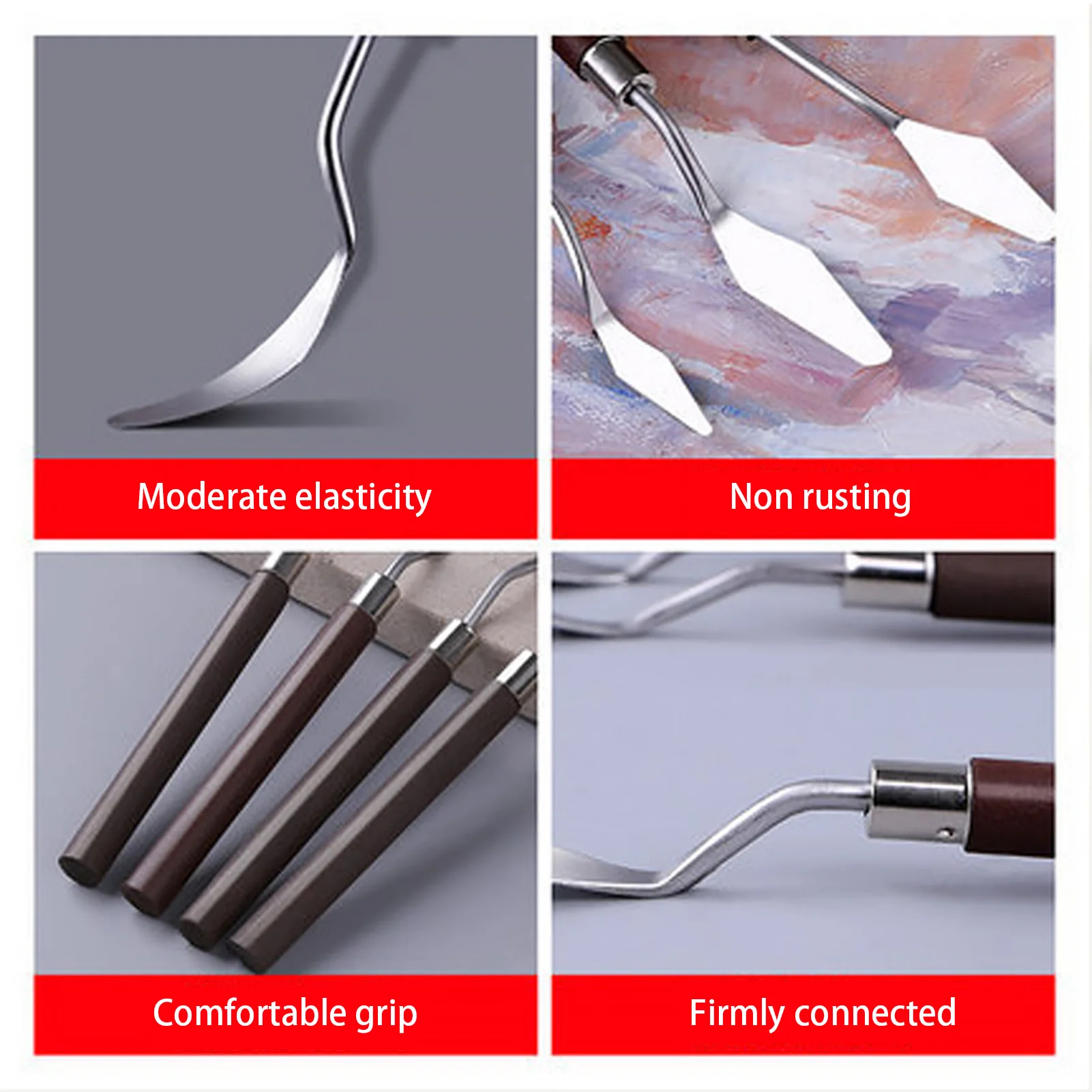 Durable Stainless Steel: This 5-piece paint oil painting spatula set and palette knife are made of high-quality stainless steel, ensuring long-lasting use for artists and painters.