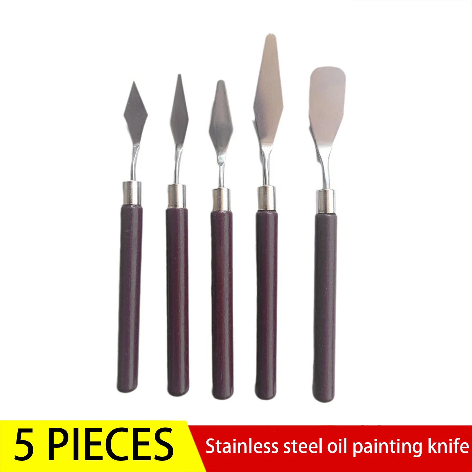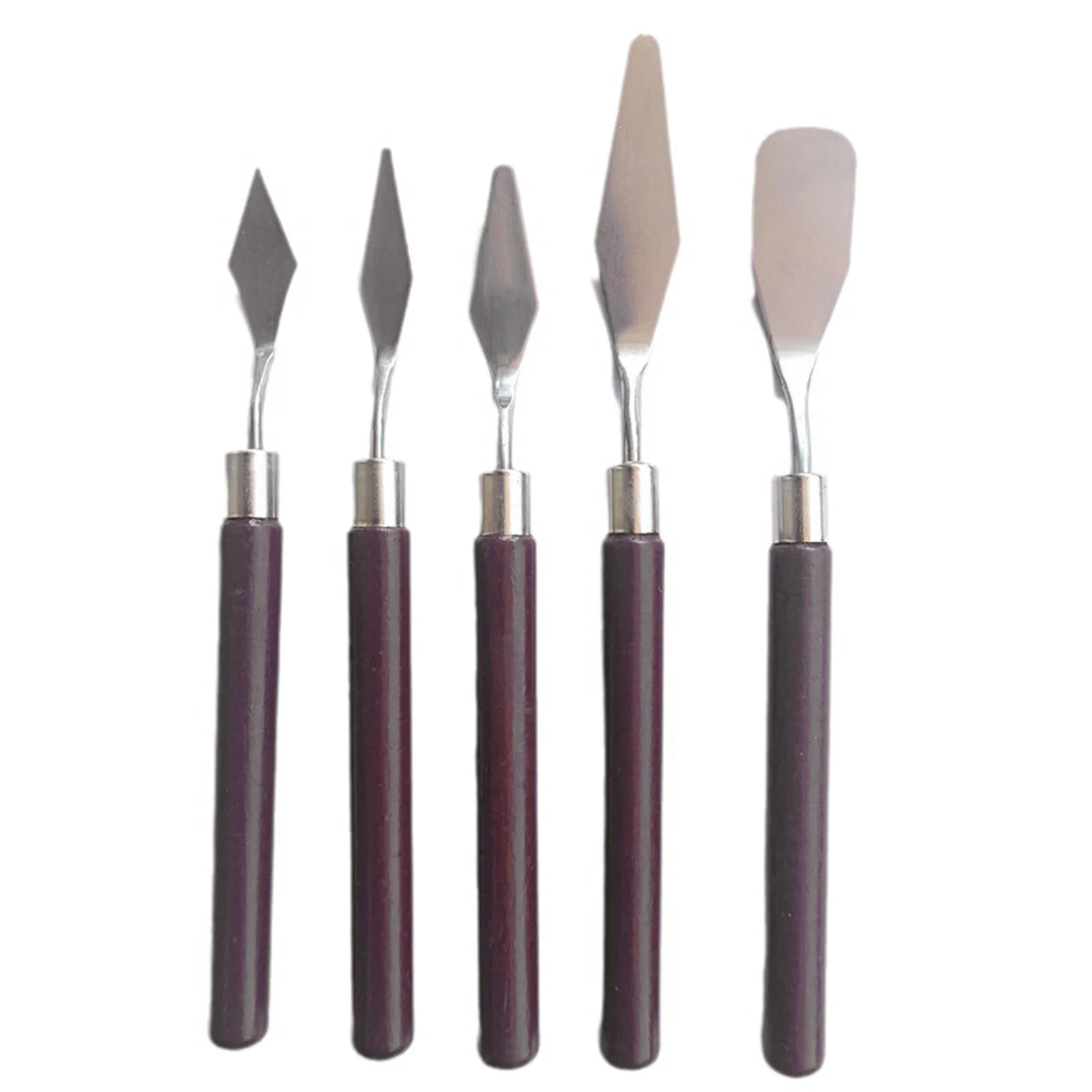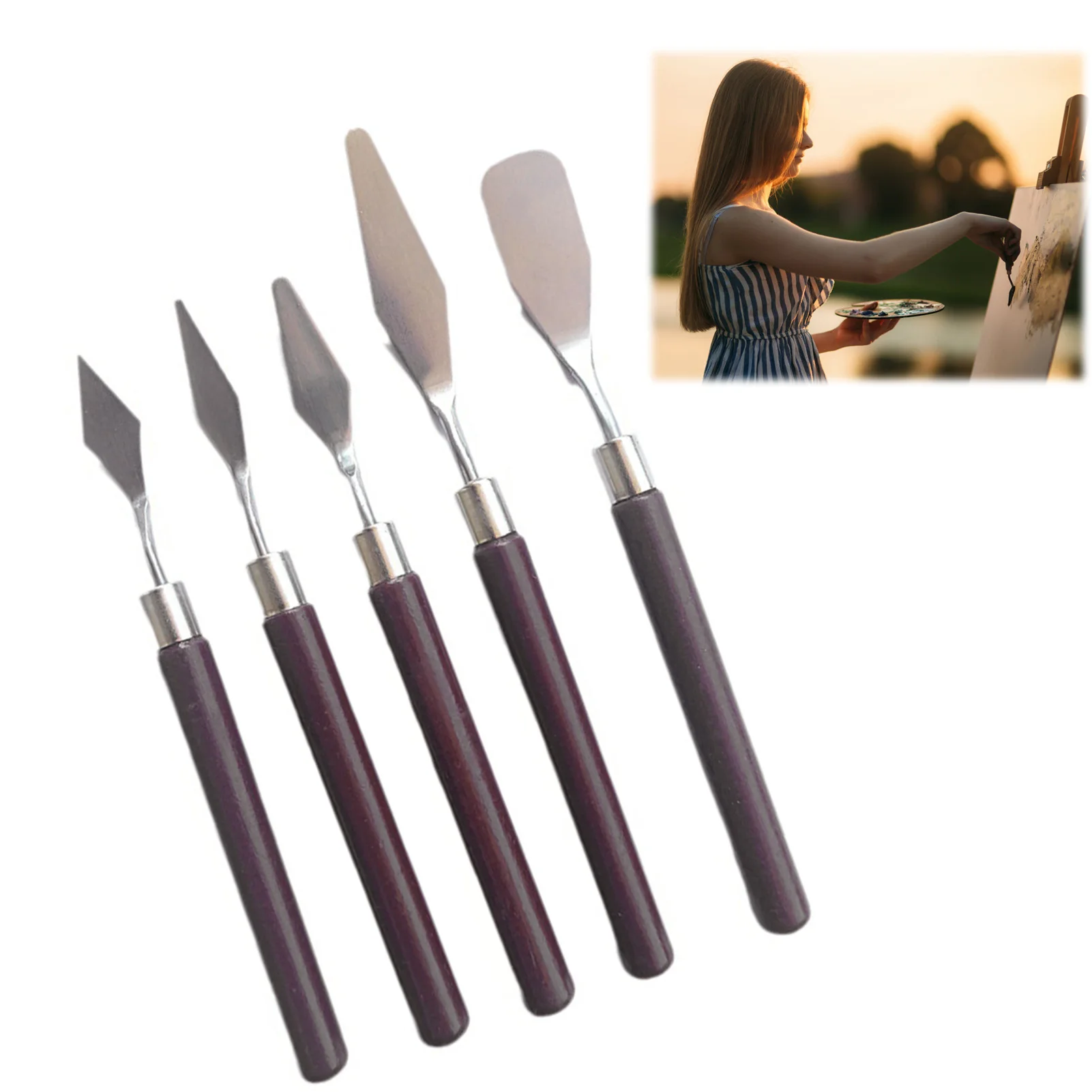 5pcs Art Oil Painting Scraper Paint Scraper Wooden Handle Palette Knife Set for Gouache Oil Painting Learners