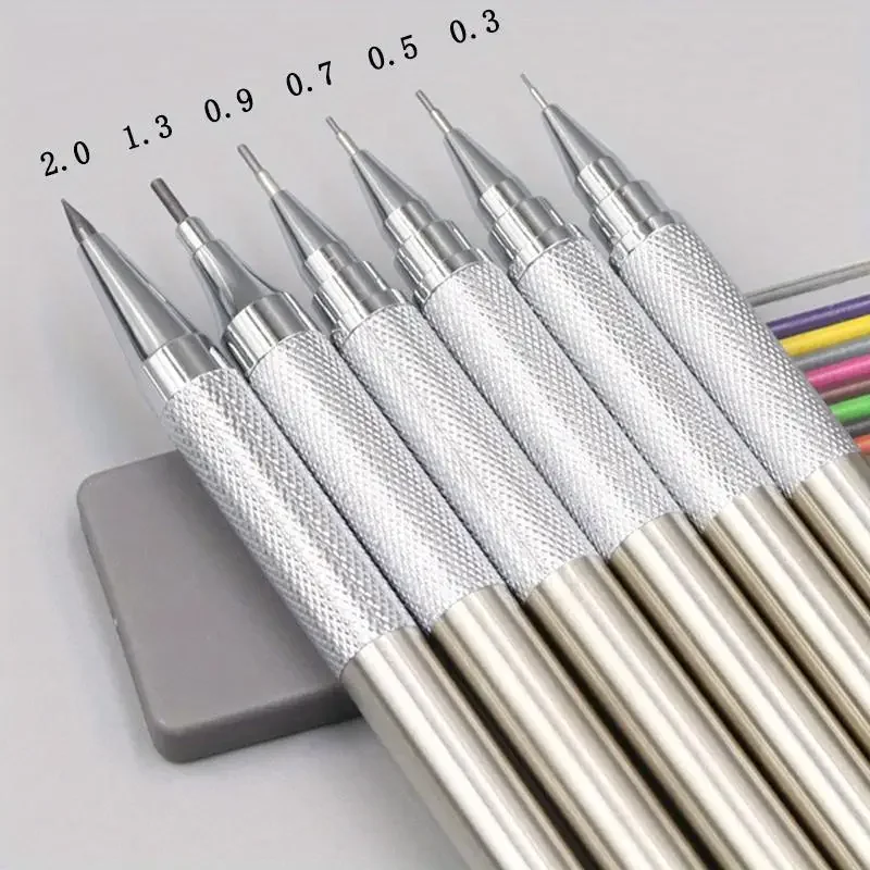 All Metal Mechanical Pencils 0.3, 0.5, 0.7, 0.9, 1.3 2.0Mm Lead Refills Art, Writing, Sketching Retractable Design
