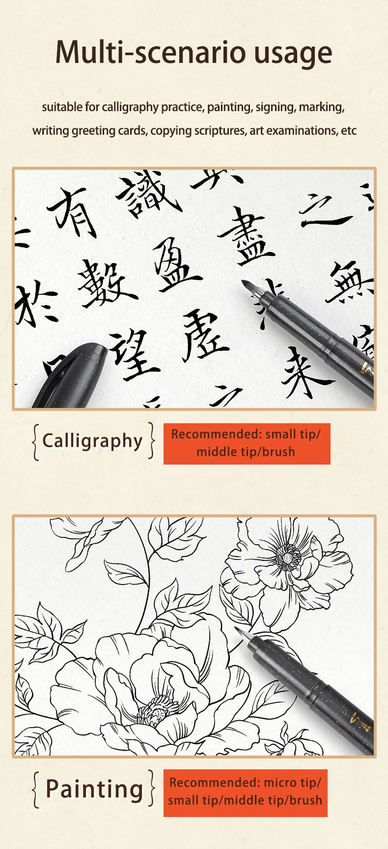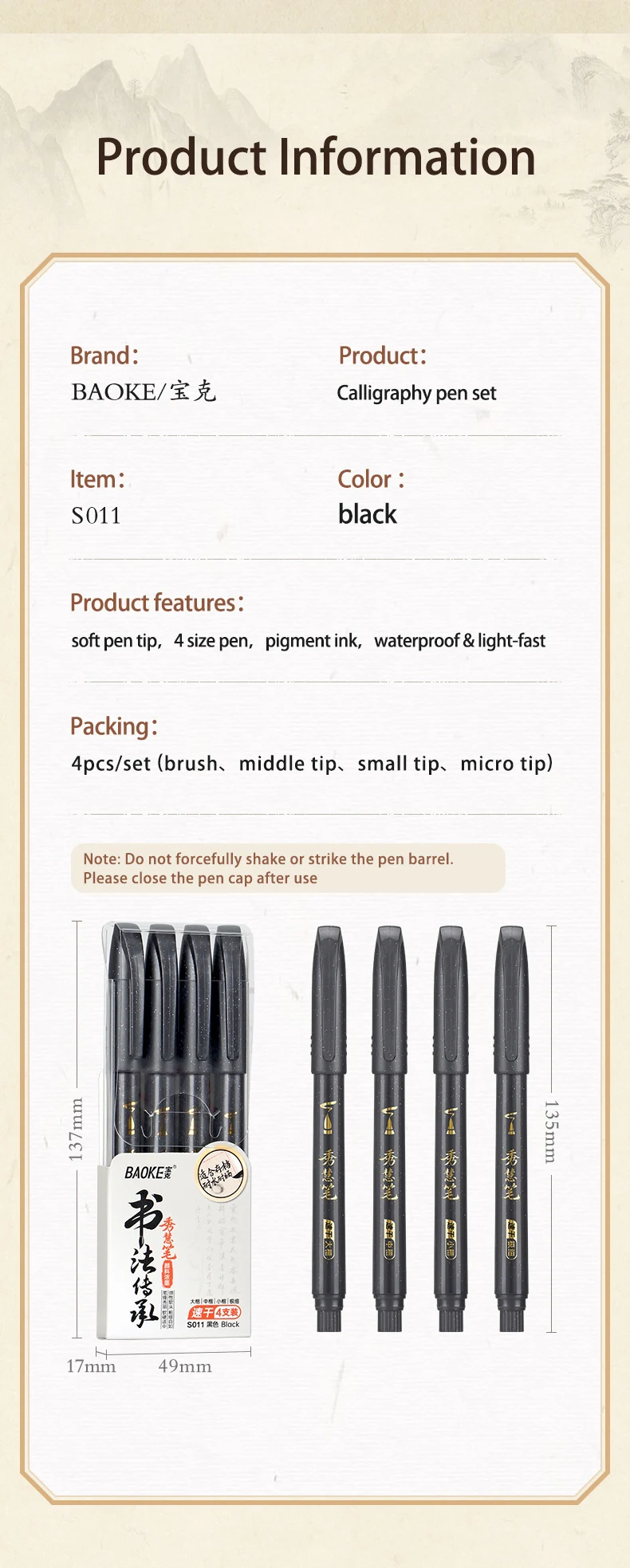 BAOKE 4-Size Calligraphy Pen Set for Writing, Drawing & Hand Lettering, Black Ink Brush Markers for Art, Calligraphy, Sketching