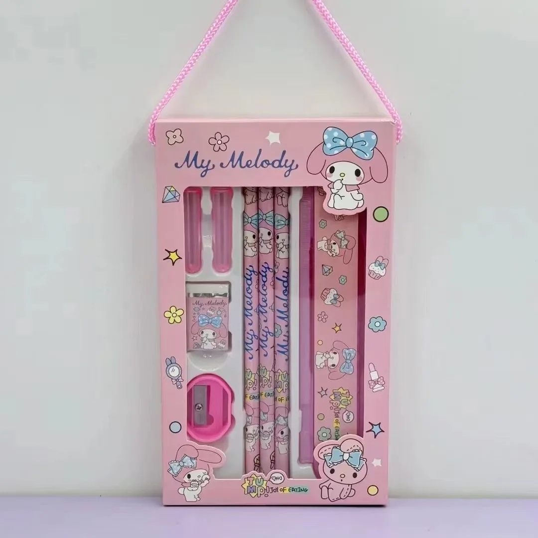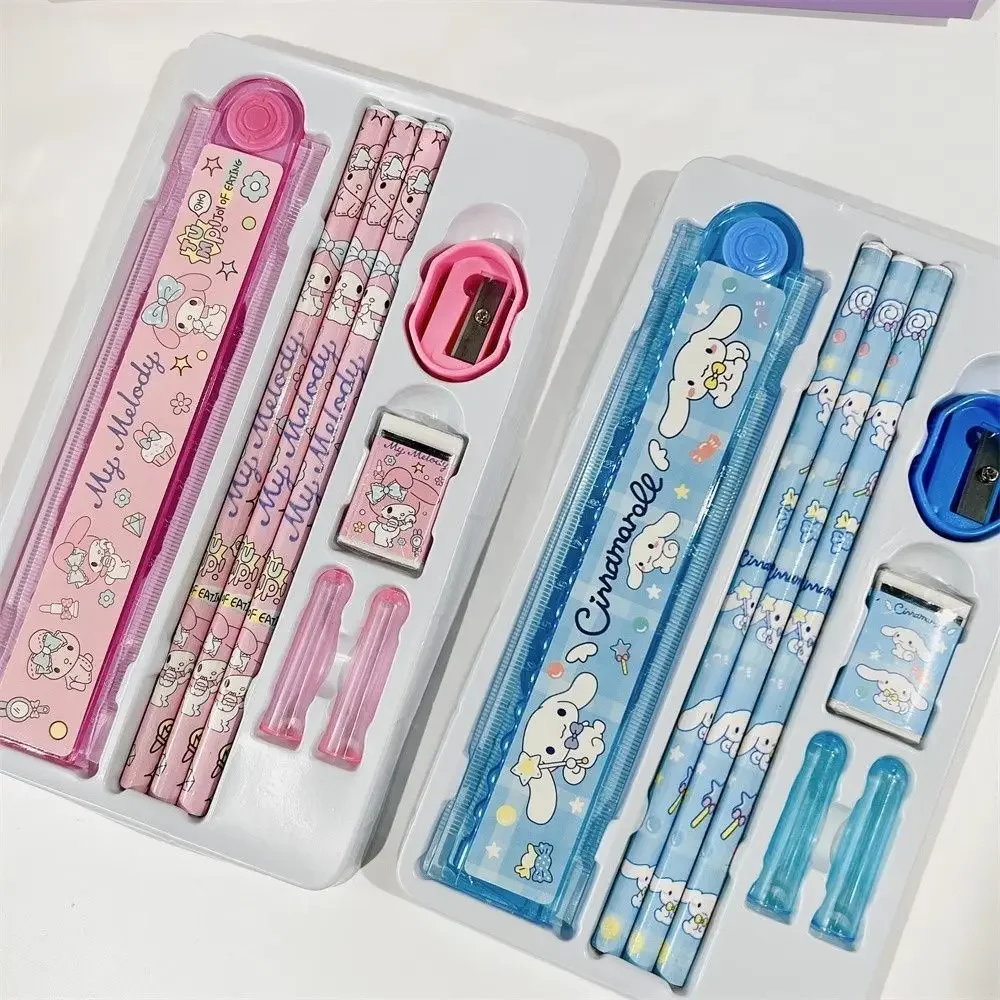 Cute Sanrio Themed Stationery Set: Pencil, Eraser & Ruler Combo Creative Learning Gift for Kids School Use