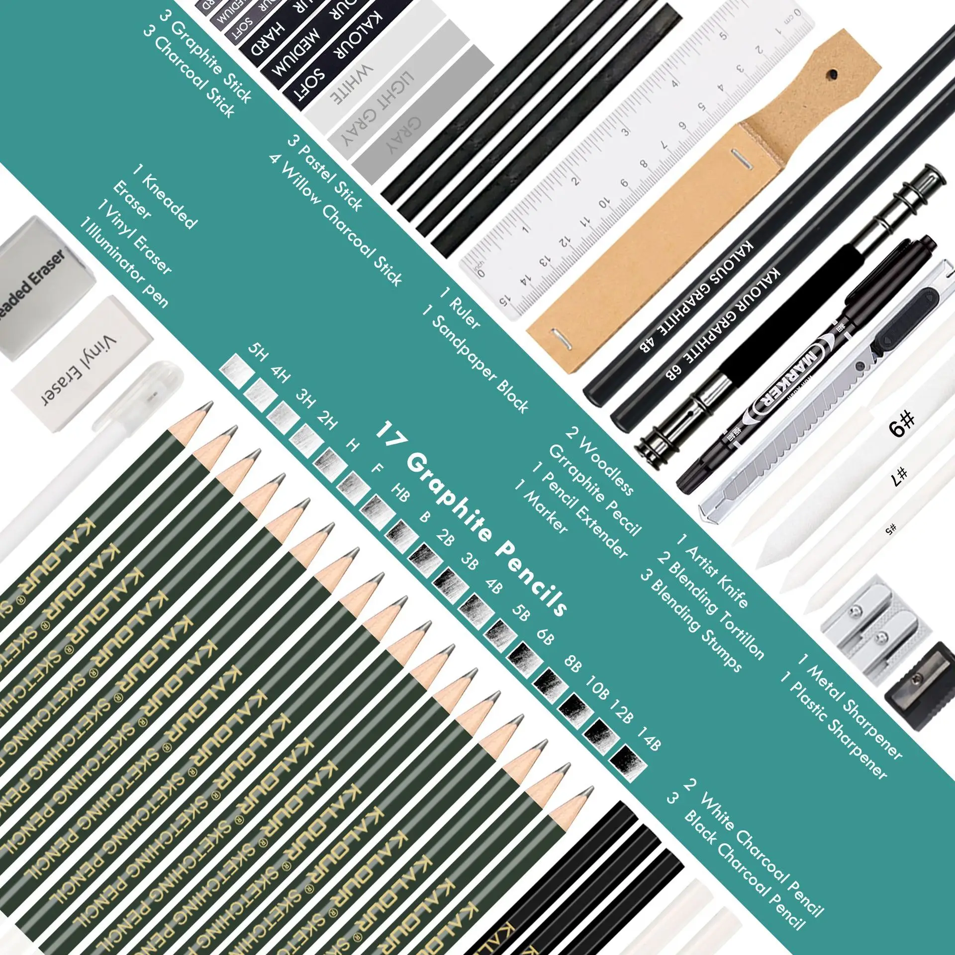 KALOUR 26/52pcs Sketch Pencils Set Professional Drawing Aesthetics Stationery Beginner Artist Carbon Graphite Painting Pencil