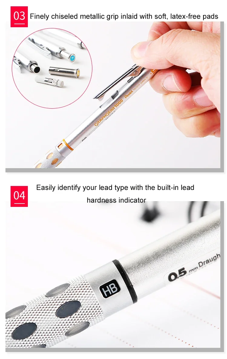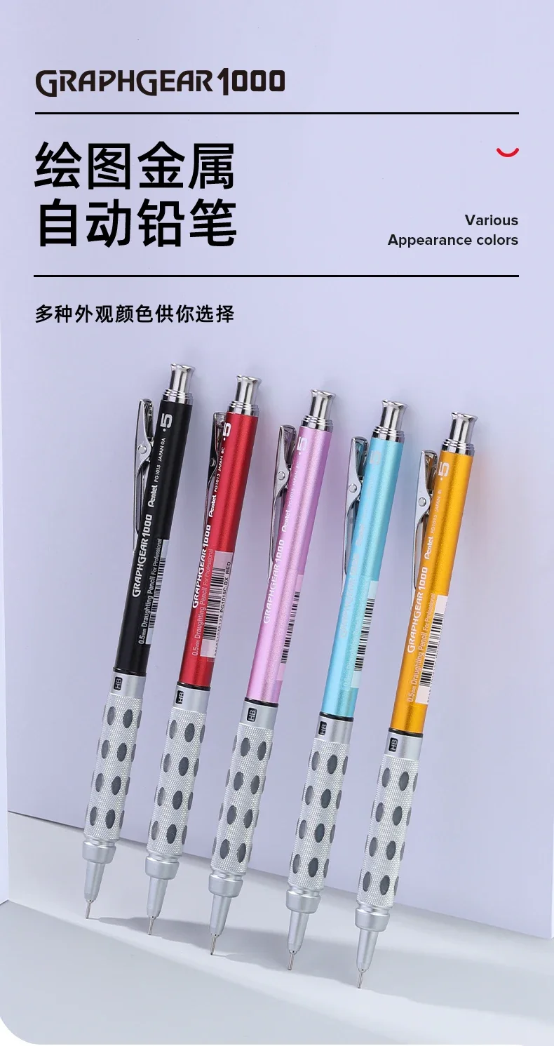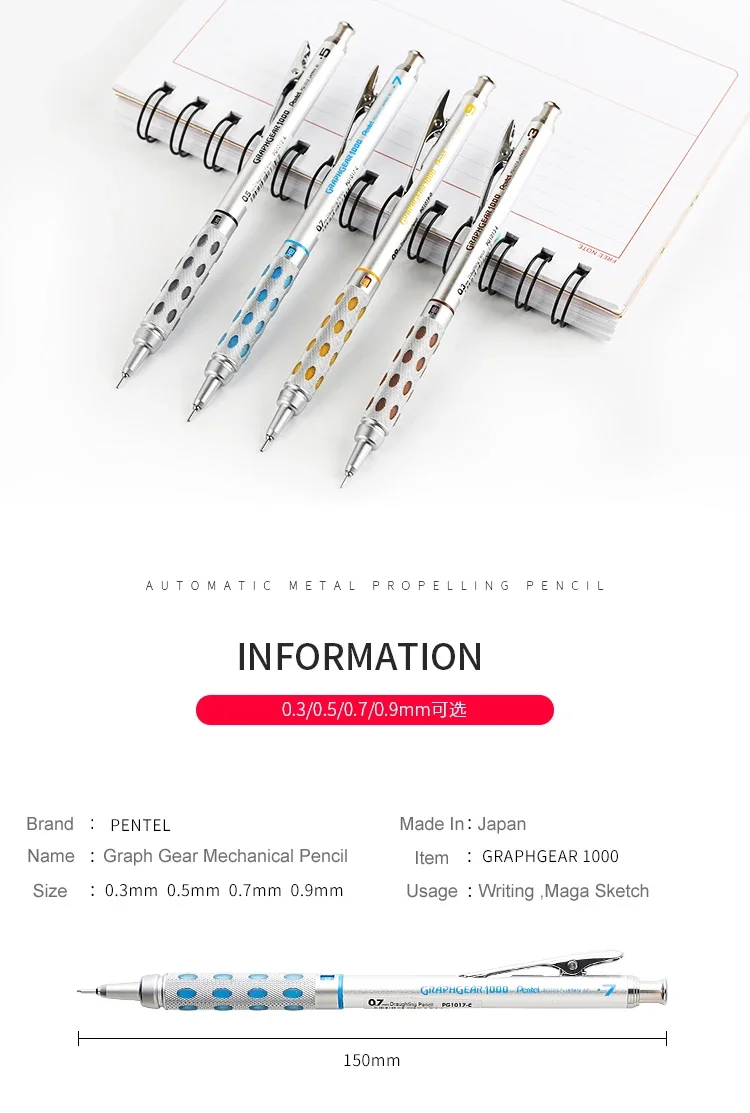 Pentel Graph Gear 1000 Mechanical Drafting Pencil With Eraser Metal Body 1pc Automatic Pencil Japanese 0.5 mm 0.3 mm 0.7 0.9 mm