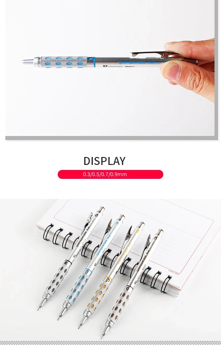1 Pieces Graph Gear 1000 Mechanical Drafting Pencil With Eraser Metal Body Automatic Pencil Japanese 0.5mm 0.3mm 0.7mm 0.9mm